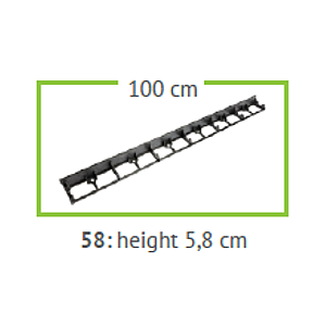Geobord 45 es una bordura rígida y resistente, fabricada de PP reciclado. Pack compuesto de 4 unidades de 4.5 cm x 1 m + 12 pins para su anclaje.