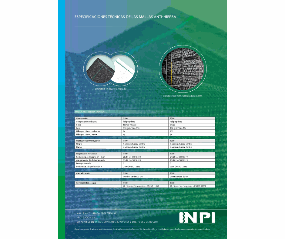 Nuestra telas antihierba Enpilon es de muy buena calidad y está fabricada con materias primas de primera categoría. Por eso nuestra malla antihierba resiste mejor los rayos UV, prácticamente no encoge y tiene una permeabilidad óptima. Nuestra malla antihierba Enpilon tiene una larga vida útil.